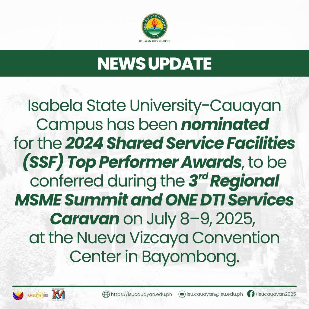 As one of the nominees for this regional recognition, ISU-Cauayan stands poised to sustain its drive in fostering grassroots enterprise and promoting sustainable economic development in Cagayan Valley.