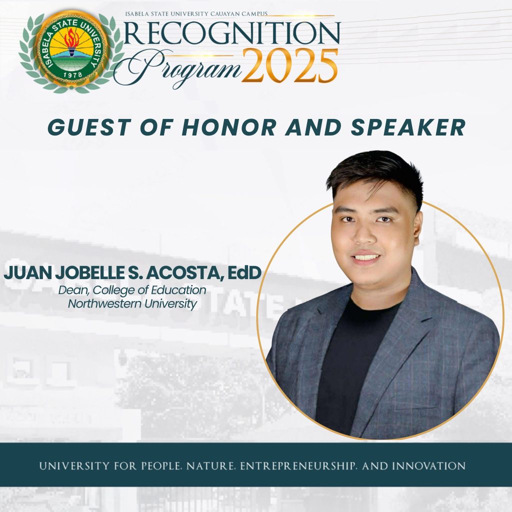 The Isabela State UniversityโCauayan Campus will hold its ๐๐๐๐ ๐๐๐๐จ๐ ๐ง๐ข๐ญ๐ข๐จ๐ง ๐๐ซ๐จ๐ ๐ซ๐๐ฆ on July 17, with ๐๐ซ. ๐๐ฎ๐๐ง ๐๐จ๐๐๐ฅ๐ฅ๐ ๐. ๐๐๐จ๐ฌ๐ญ๐, Dean of the College of Education at Northwestern University, as ๐๐ฎ๐๐ฌ๐ญ ๐จ๐ ๐๐จ๐ง๐จ๐ซ ๐๐ง๐ ๐๐ฉ๐๐๐ค๐๐ซ. His presence is set to bring insight and inspiration to this academic celebration.