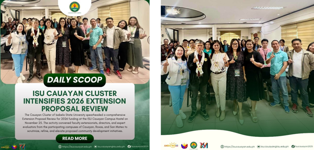 The Cauayan Cluster of Isabela State University spearheaded a comprehensive Extension Proposal Review for 2026 funding at the ISU Cauayan Campus Hostel, November 25.