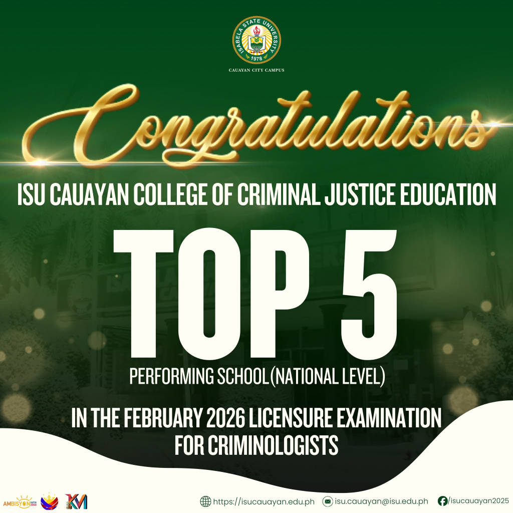 Congratulations to the newly registered criminologists and to the entire ISU Cauayan College of Criminal Justice Education community for setting a high-water mark worthy of emulation.