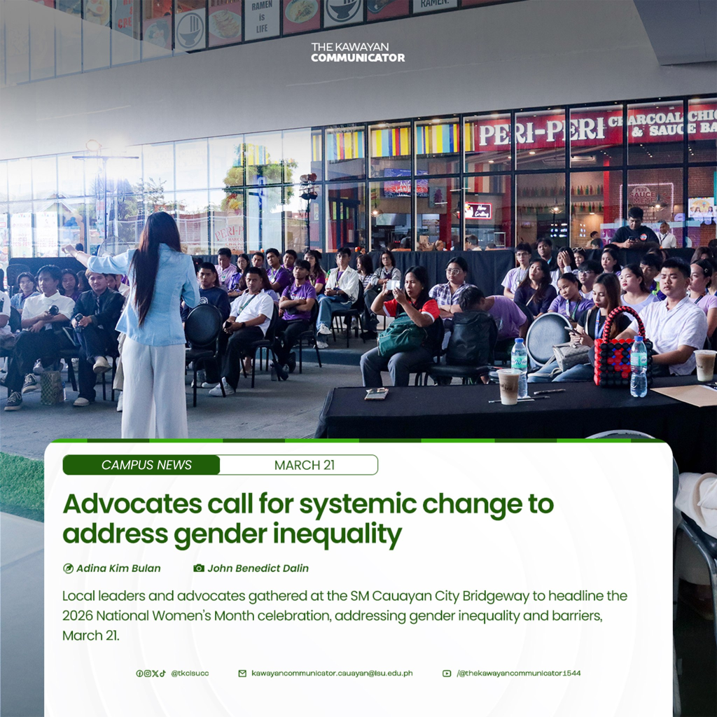 Local leaders and advocates gathered at the SM Cauayan City Bridgeway to headline the 2026 National Womenโ€™s Month celebration, addressing gender inequality and barriers, March 21.