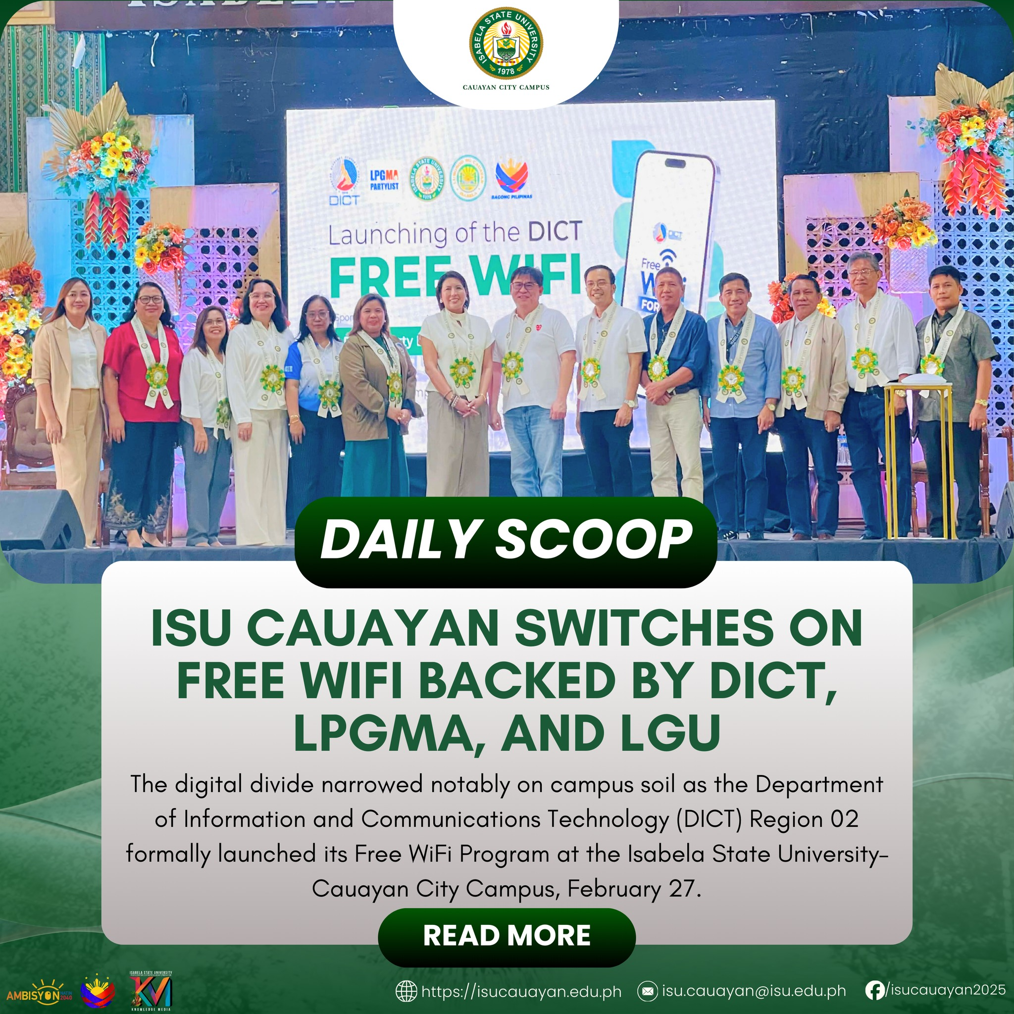 The digital divide narrowed notably on campus soil as the Department of Information and Communications Technology (DICT) Region 02 formally launched its Free WiFi Program at the Isabela State UniversityโCauayan City Campus, February 27. Cast as the fulfillment of a state obligation rather than a routine technological upgrade, the ceremony assembled regional and national authorities, continue reading : ๐๐๐๐๐๐ ๐๐๐๐๐โฎ ๐๐๐ ๐๐๐ฎ๐๐ฒ๐๐ง ๐๐ฐ๐ข๐ญ๐๐ก๐๐ฌ ๐๐ง ๐ ๐ซ๐๐ ๐๐ข๐ ๐ข ๐๐๐๐ค๐๐ ๐๐ฒ ๐๐๐๐, ๐๐๐๐๐, ๐๐ง๐ ๐๐๐