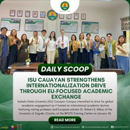 Isabela State University (ISU) Cauayan Campus intensified its drive for global academic engagement as it hosted an international academic lecture featuring visiting professor and European scholar Dr. Robert S. Mikac of the University of Zagreb, Croatia, at the BPOTS Training Center on January 26. The said lecture, titled โThe EU and the World: Migration, Policy, continue reading : ๐๐๐๐๐๐ ๐๐๐๐๐โฎ ๐๐๐ ๐๐๐ฎ๐๐ฒ๐๐ง ๐๐ญ๐ซ๐๐ง๐ ๐ญ๐ก๐๐ง๐ฌ ๐๐ง๐ญ๐๐ซ๐ง๐๐ญ๐ข๐จ๐ง๐๐ฅ๐ข๐ณ๐๐ญ๐ข๐จ๐ง ๐๐ซ๐ข๐ฏ๐ ๐๐ก๐ซ๐จ๐ฎ๐ ๐ก ๐๐-๐ ๐จ๐๐ฎ๐ฌ๐๐ ๐๐๐๐๐๐ฆ๐ข๐ ๐๐ฑ๐๐ก๐๐ง๐ ๐